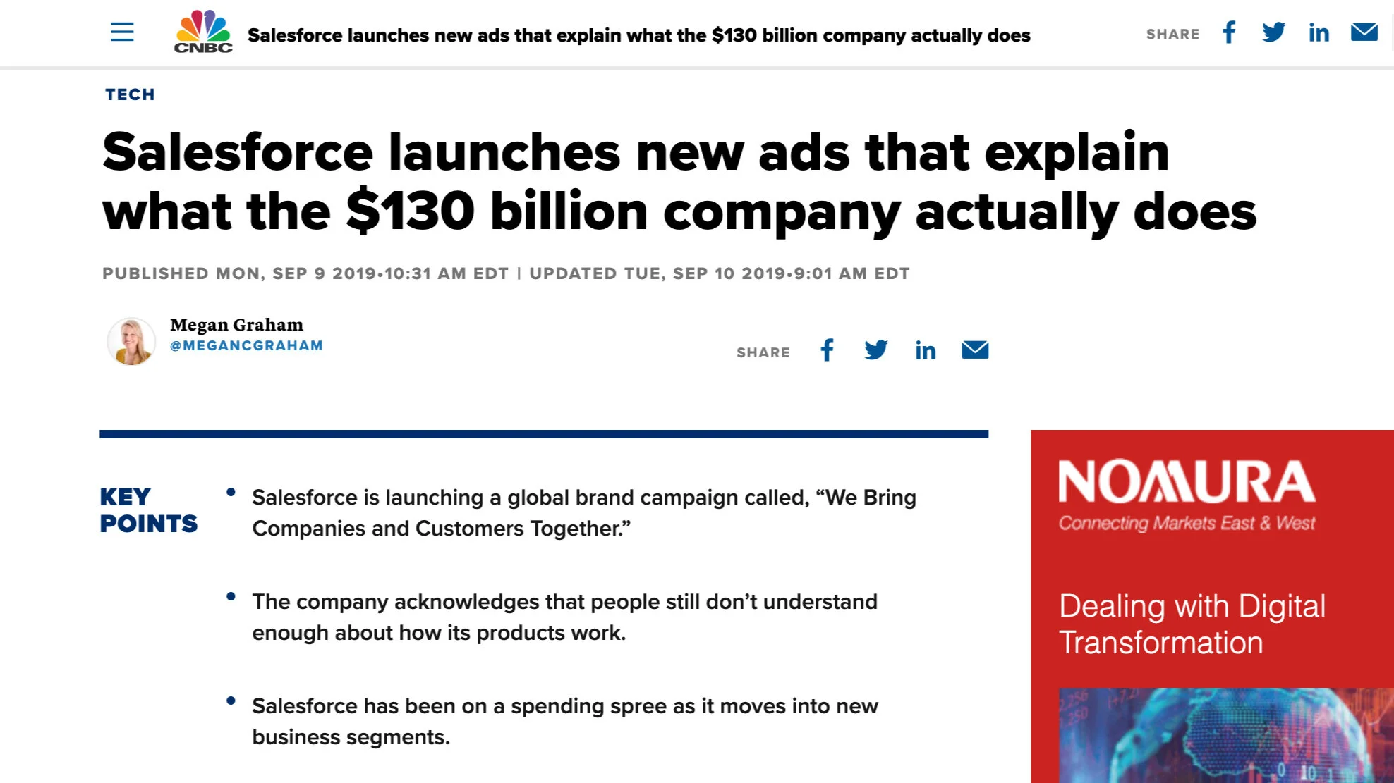 If you had to explain to your mom what Salesforce does, could you? We couldn’t either. This was the first ever, yes ever, in 20 years ever, brand campaign creating awareness globally of what we do and the breadth of products and industries we have solutions for. I led the cross functional team creating this beautiful campaign from start to finish. The campaign has shown up globally with tons of press and has internally become a rallying cry for all 60,000 proud global employees.