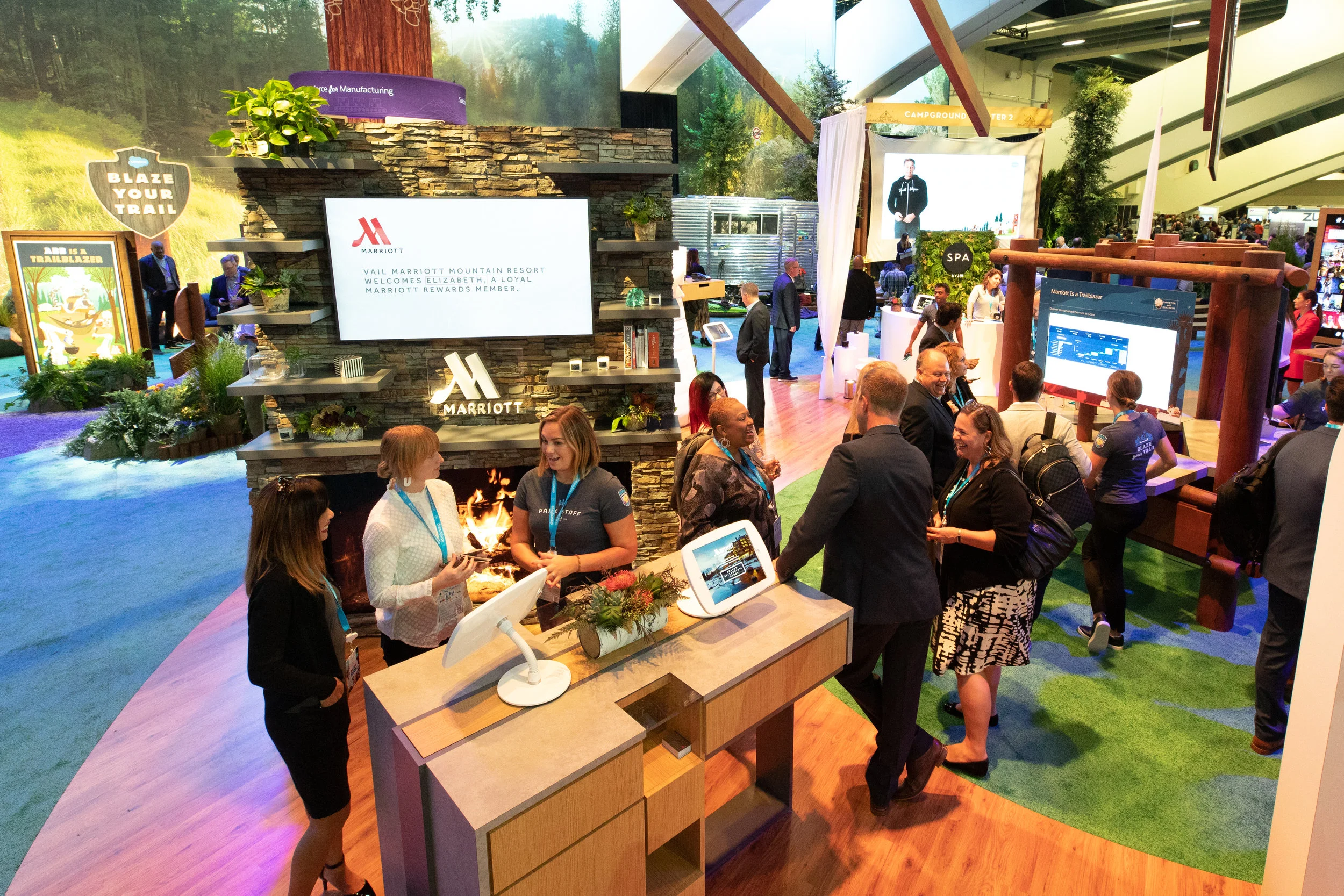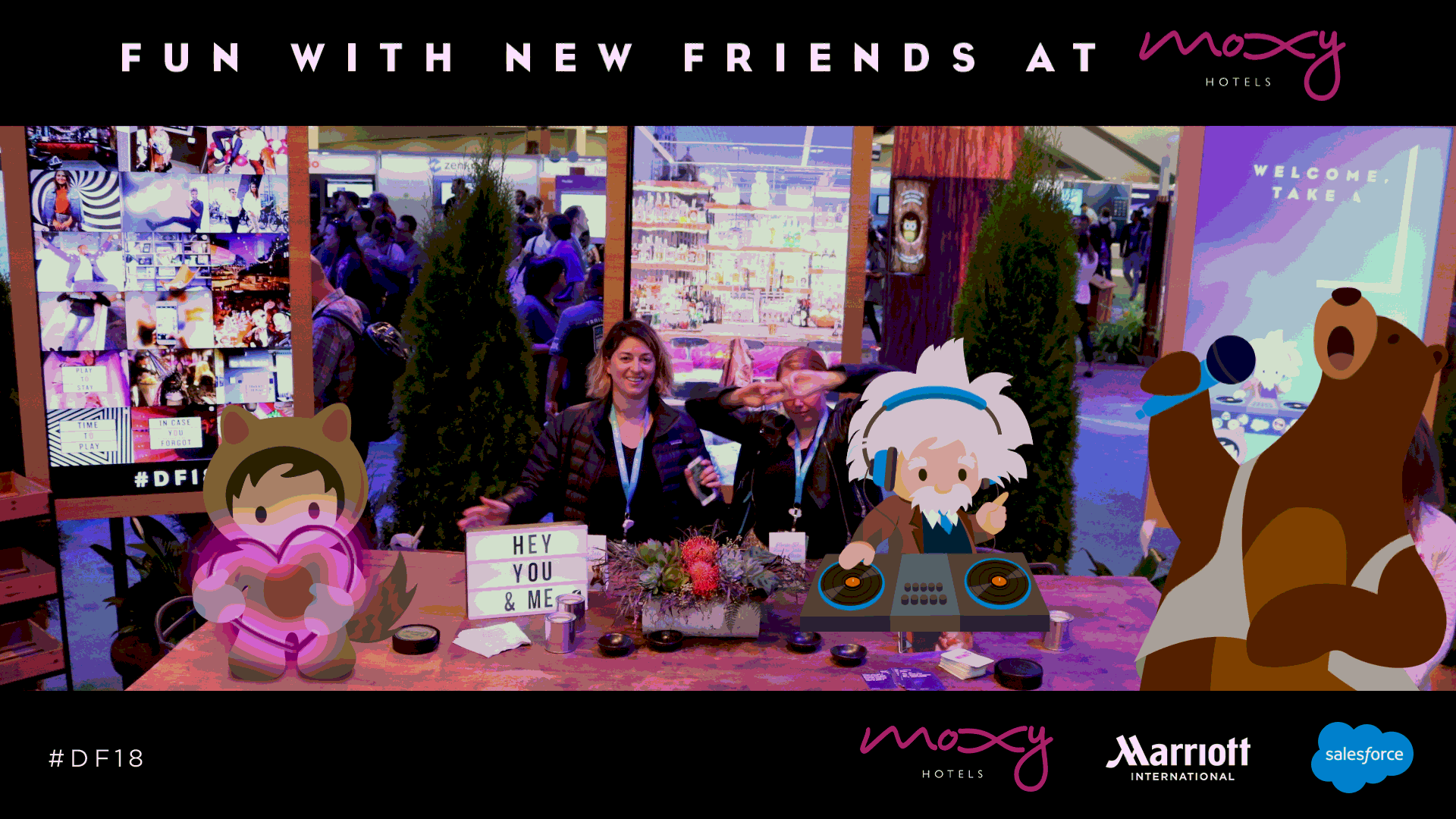 We told this story through what I like to call…a “travel donut” taking the attendee through an experience a traveler would go through, before (on a plane), during (check in, in-room, spa) and after their trip, showcasing how Marriott uses Salesforce to know and personalize each customers journey. This all ended with a photo-op in Marriott’s Moxy property, complete with games and refreshments.